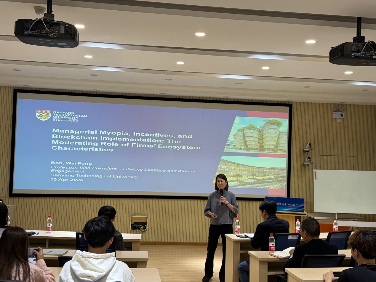2025年4月10日晚,beat365亚洲版官方网站在学院南路校区MBA教育中心A28会议室成功举办了beat365亚洲版官方网站卓越学术讲坛2025年第4期讲座。本次讲座邀请了新加坡南洋理工大学副校长、信息系统学科总统讲座教授莫惠鈁(Wai Fong Boh)作为主讲嘉宾。国际合作处处长葛建新、beat365亚洲版官方网站院长兼MBA教育中心主任林嵩参加了此次活动。讲座由beat365亚洲版官方网站院长兼MBA教育中心林嵩教授主持。林嵩教授详细介绍了莫惠鈁教授的学术背景。莫惠鈁教授现任南洋理工大学终身学习与校友事...